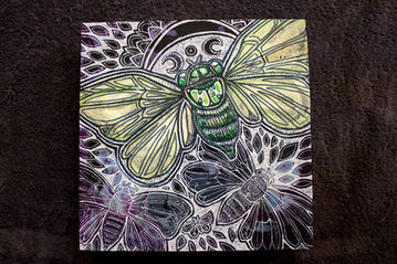 Medium: ink and acrylic on wood panel.