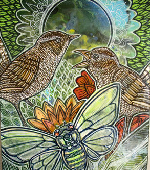 Medium: ink and acrylic on wood panel.